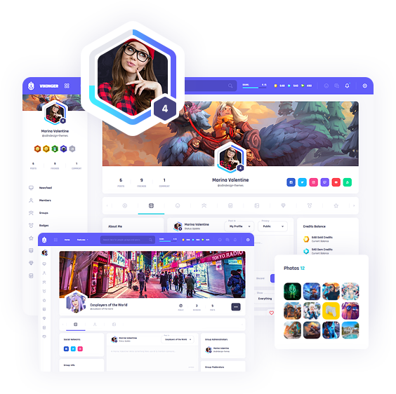 An incredible community with super full profiles, social links, gamification items and much more!