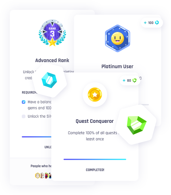 An incredible gamification system with badges, quests, ranks and credits to earn and unlock!